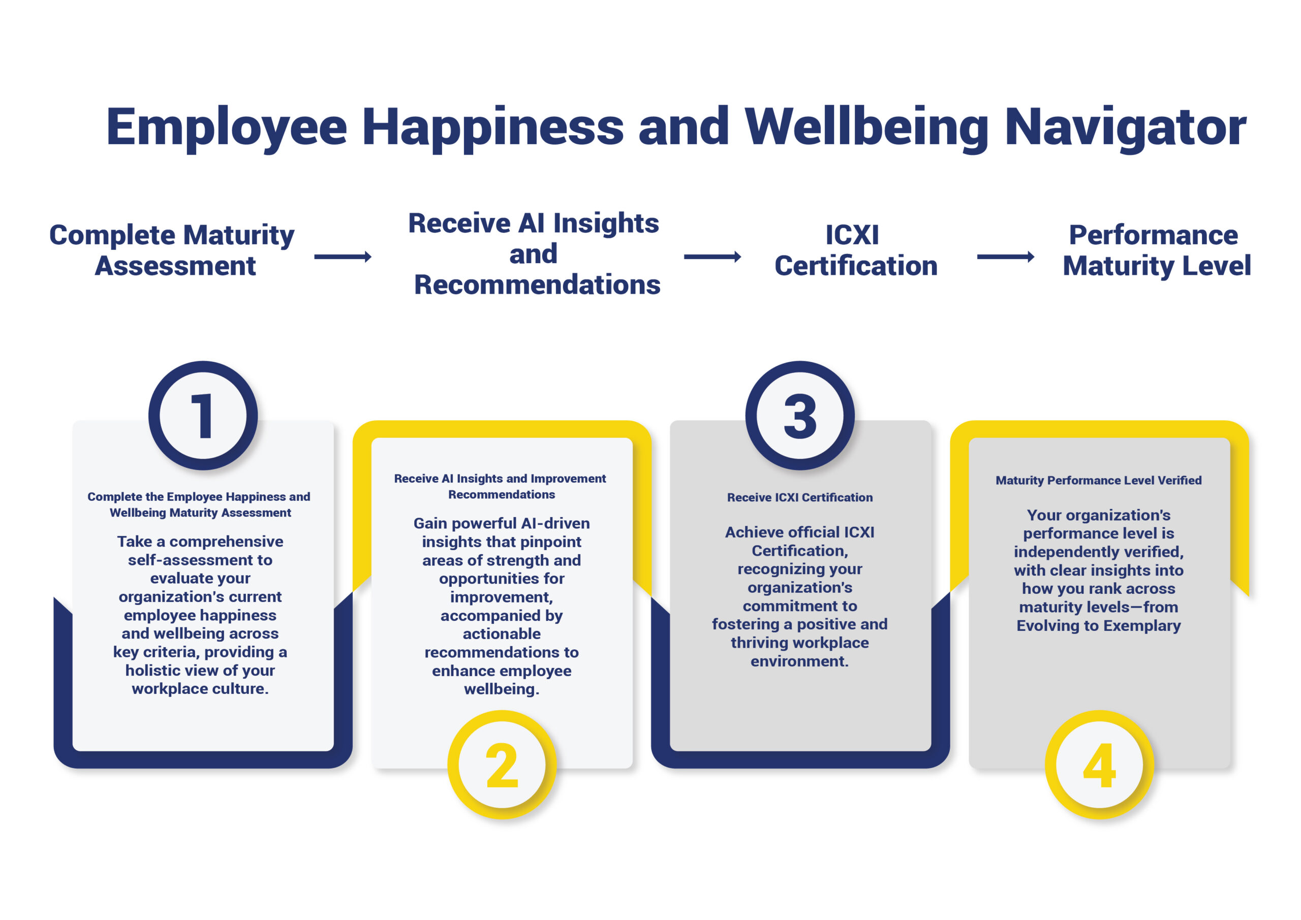 Achieve credibility and showcase your commitment to employee happiness with an official ICXI Performance Certification. Our verification process ensures your business meets global best practices in employee wellbeing.